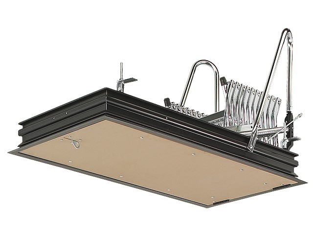 Gracias a su diseño compacto, la escalera escamoteable ZX es perfecta para huecos pequeños y alturas elevadas. Su sistema de apertura requiere un espacio libre delante del cajón para su despliegue, y viene completamente montada para una instalación rápida y sencilla.